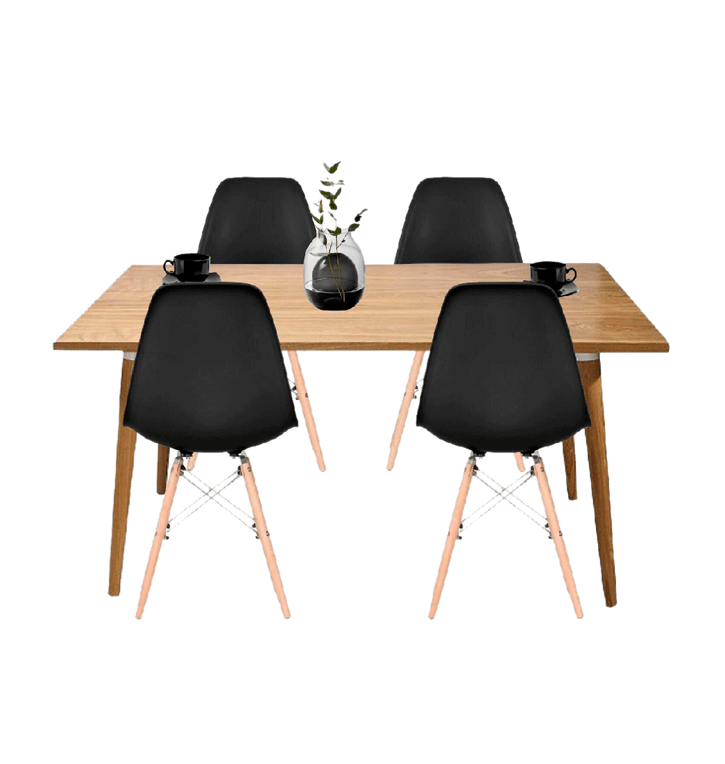 Comedor 4 Puestos Madera Robledo + Sillas Eames Negras - Ekonomodo Colombia