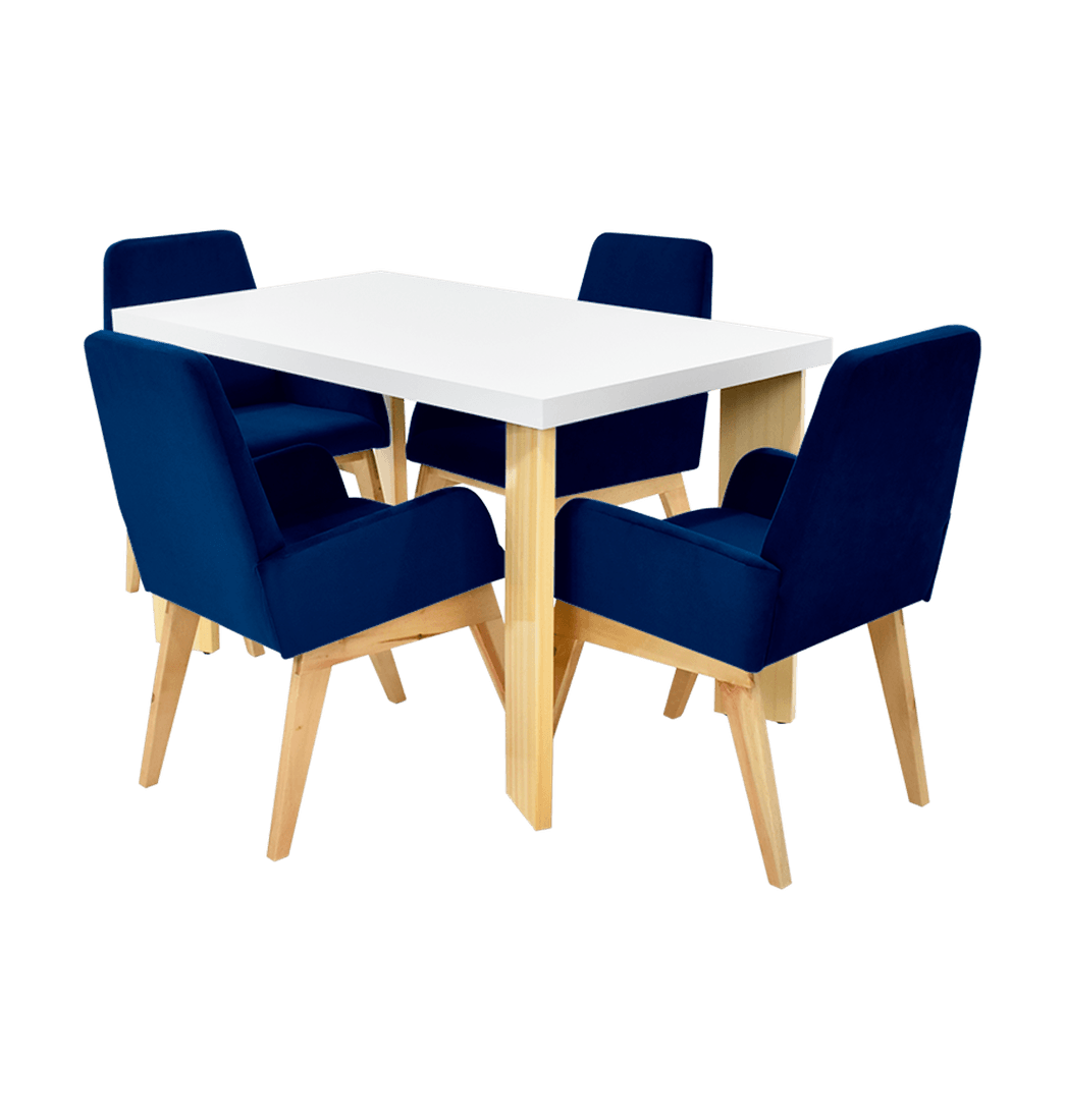 Comedor 4 Puestos Sevilla Sillas Islandia Tela Azul - Hogar Venecia