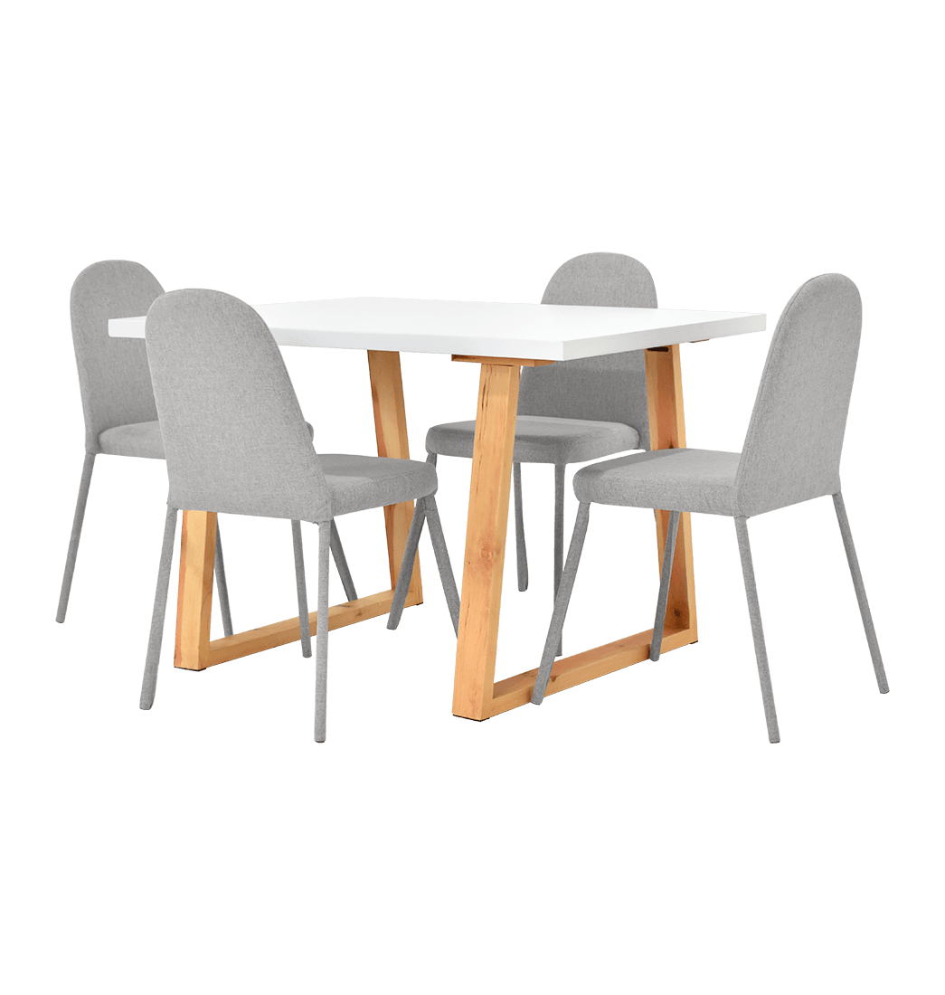 Comedor Andara + 4 Sillas Dublín Tela Plata - Hogar Venecia
