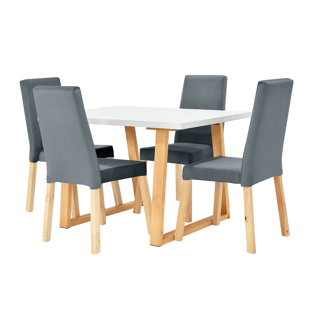 Comedor Andara + 4 Sillas Galicia Tela Gris - Hogar Venecia