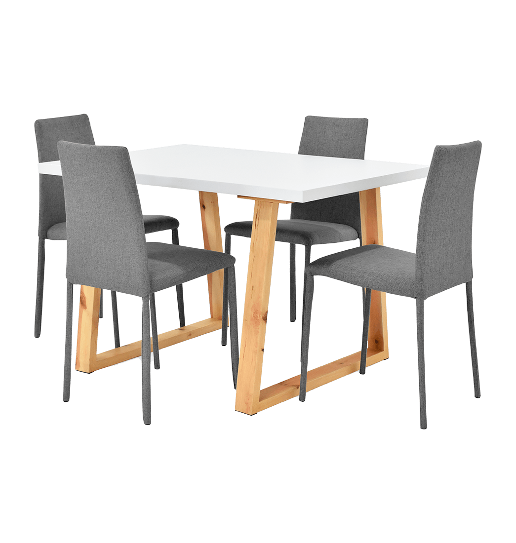 Comedor Andara + 4 Sillas Lyon Tela Gris - Hogar Venecia