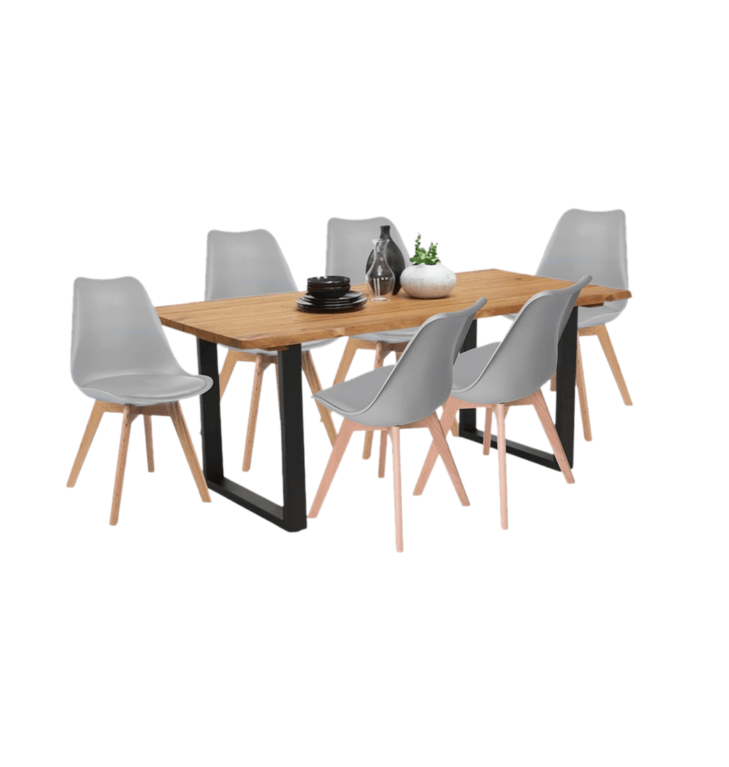 Comedor Celeno Macadamia 15mm + Silla Milano Gris - Ekonomodo