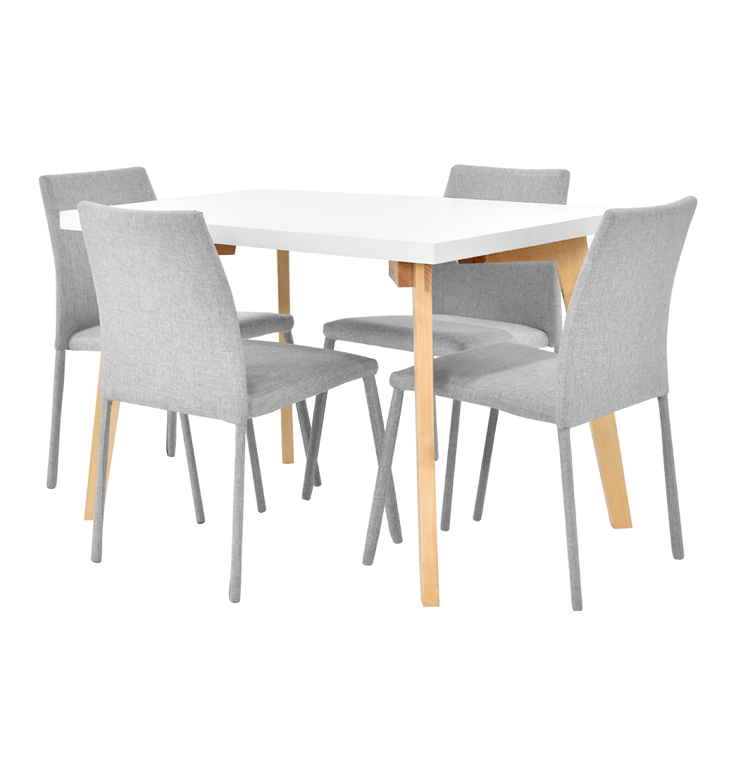 Comedor Lugo Matiz + 4 Sillas Lugo Tela Plata - Hogar Venecia