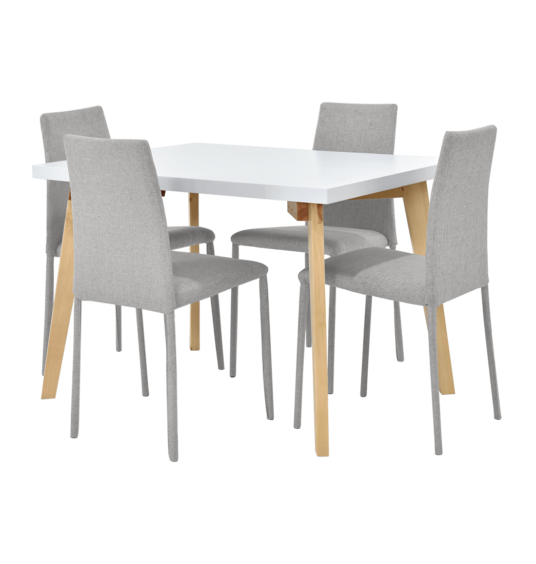 Comedor Lugo Matiz + 4 Sillas Lyon Tela Plata - Hogar Venecia