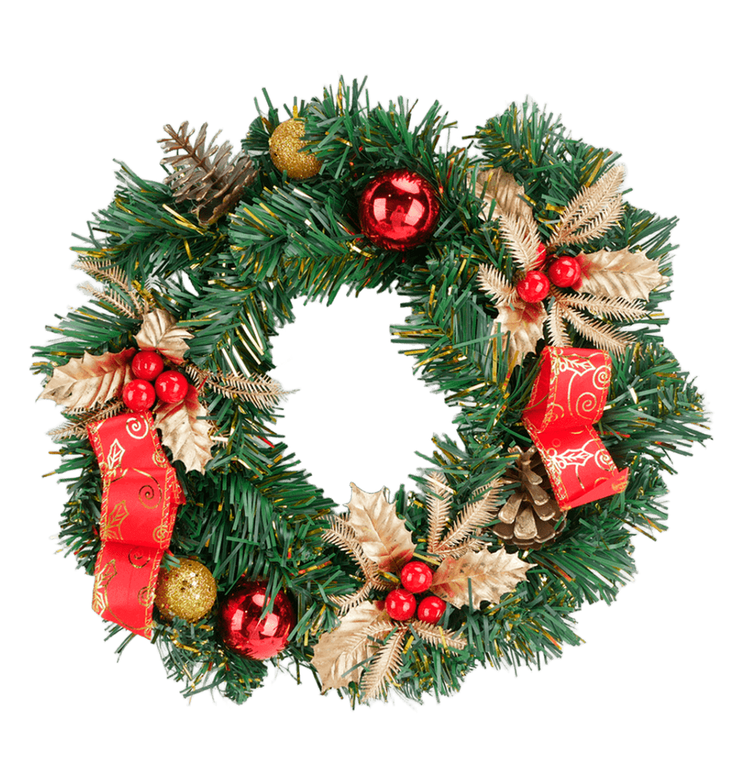 Corona Navideña Decorada Rojo/Dorado 30cm - Aviva Home