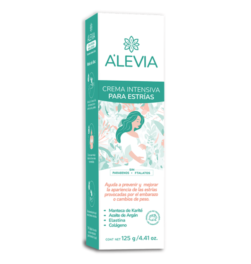 Alivia Crema intensiva para las estrías ayuda a prevenir y/o mejorar la apariencia de las estrías provocadas por embarazo o cambios de peso. Usado por hombre y mujeres que quieren mejorar la elasticidad de su piel.
