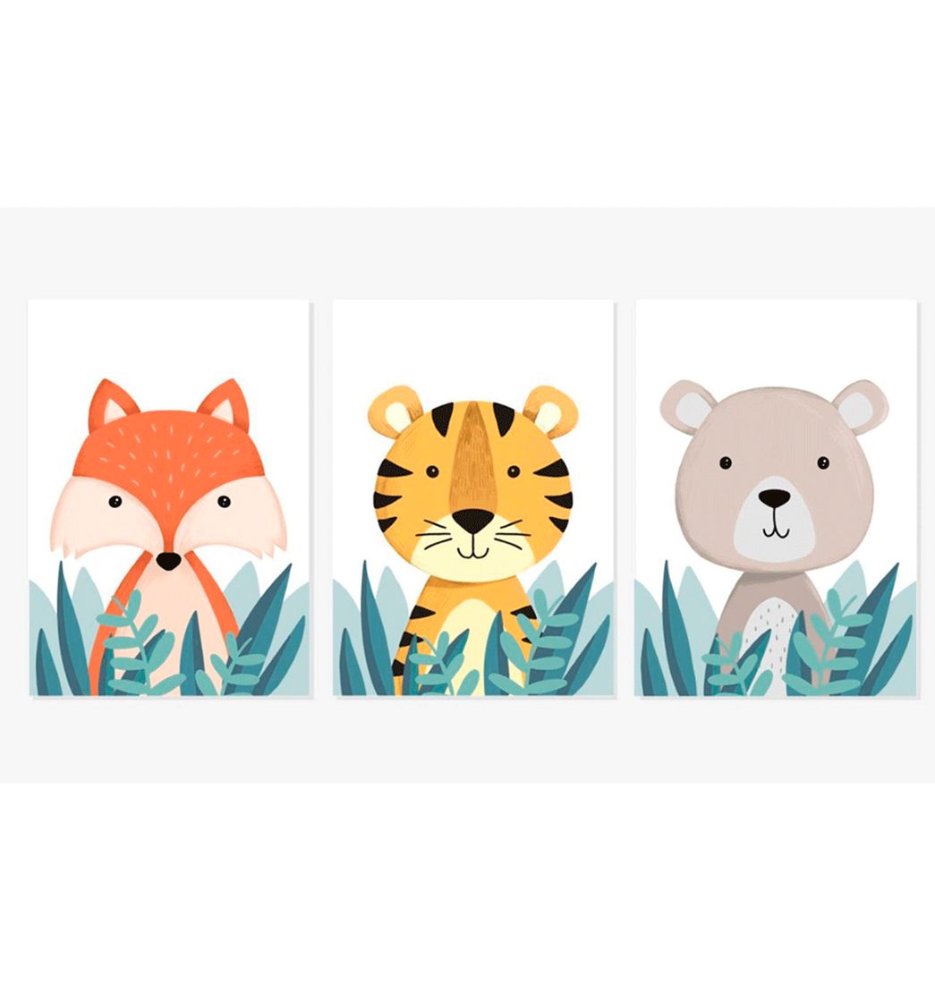 Cuadros x 3 Trípticos Animales Kids 40x40x5cm - Ekonomodo