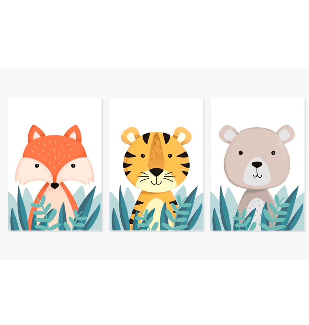 Cuadros x 3 Trípticos Animales Kids 50x70x5cm - Ekonomodo