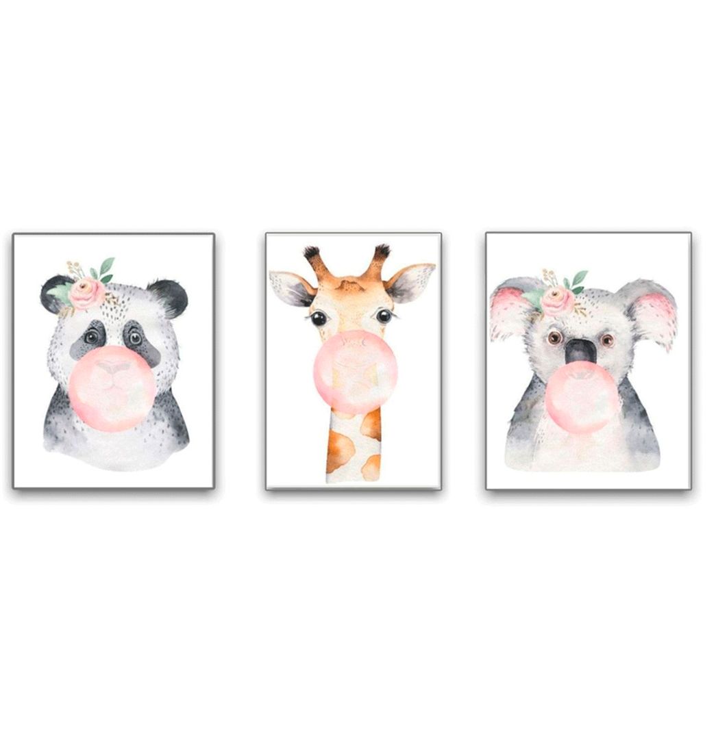 Cuadros x 3 Trípticos Animales Kids Chicle 40x40x5cm - Ekonomodo