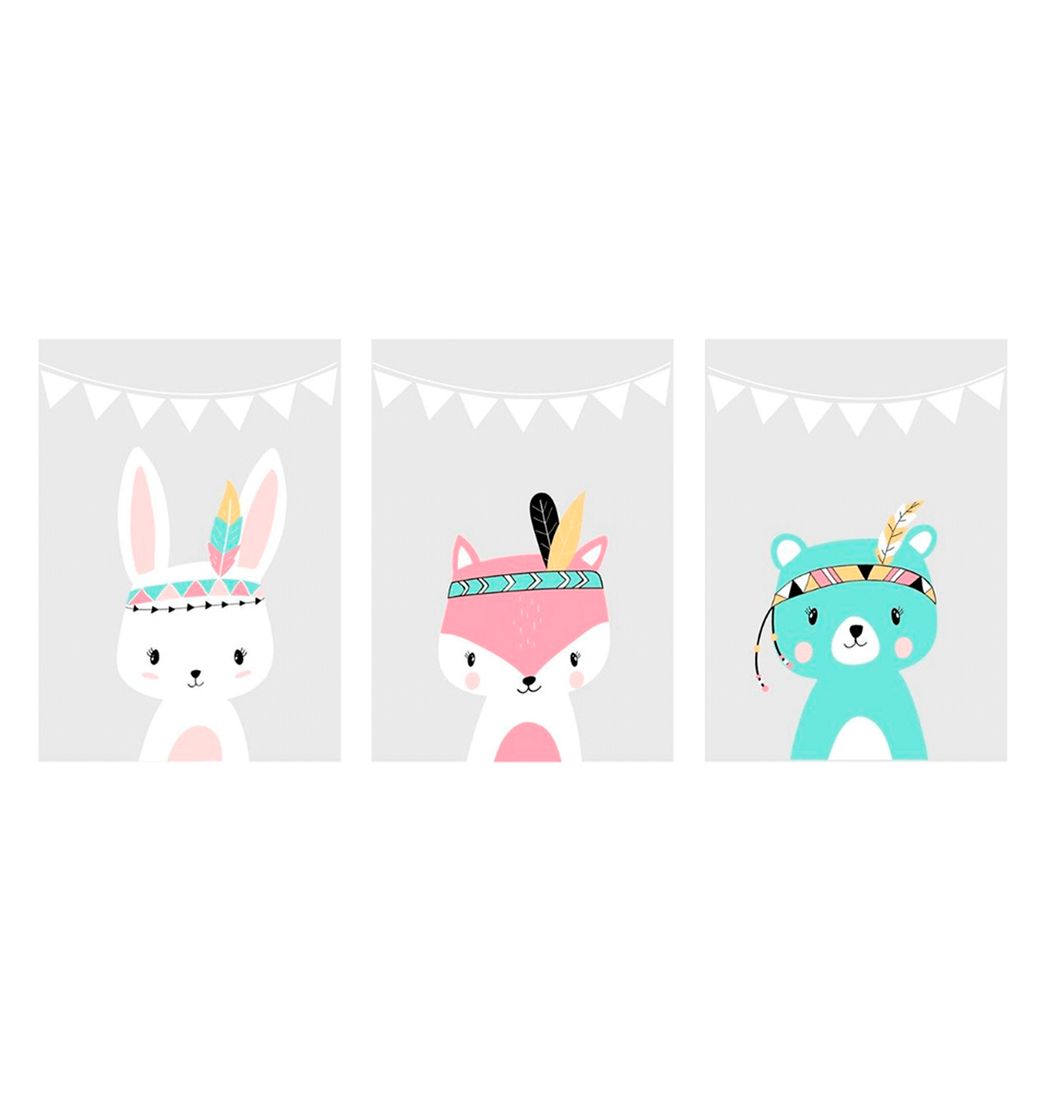 Cuadros x 3 Trípticos Indio Kids 50x70x5cm - Ekonomodo