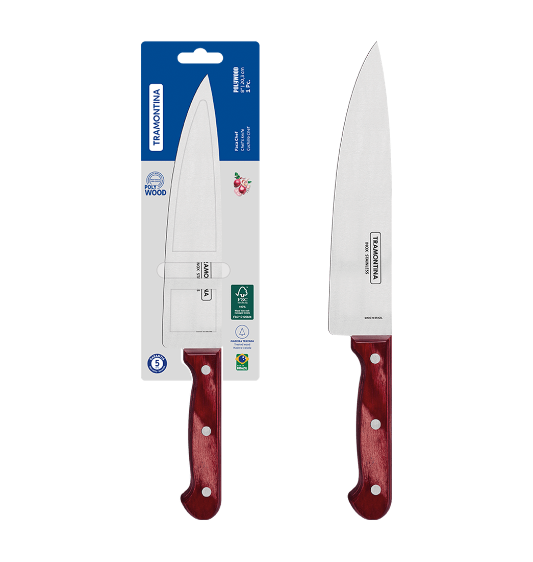 Cuchillo de Cocina en Acero Inoxidable y Mango Polywood Rojo 8" - Tramontina