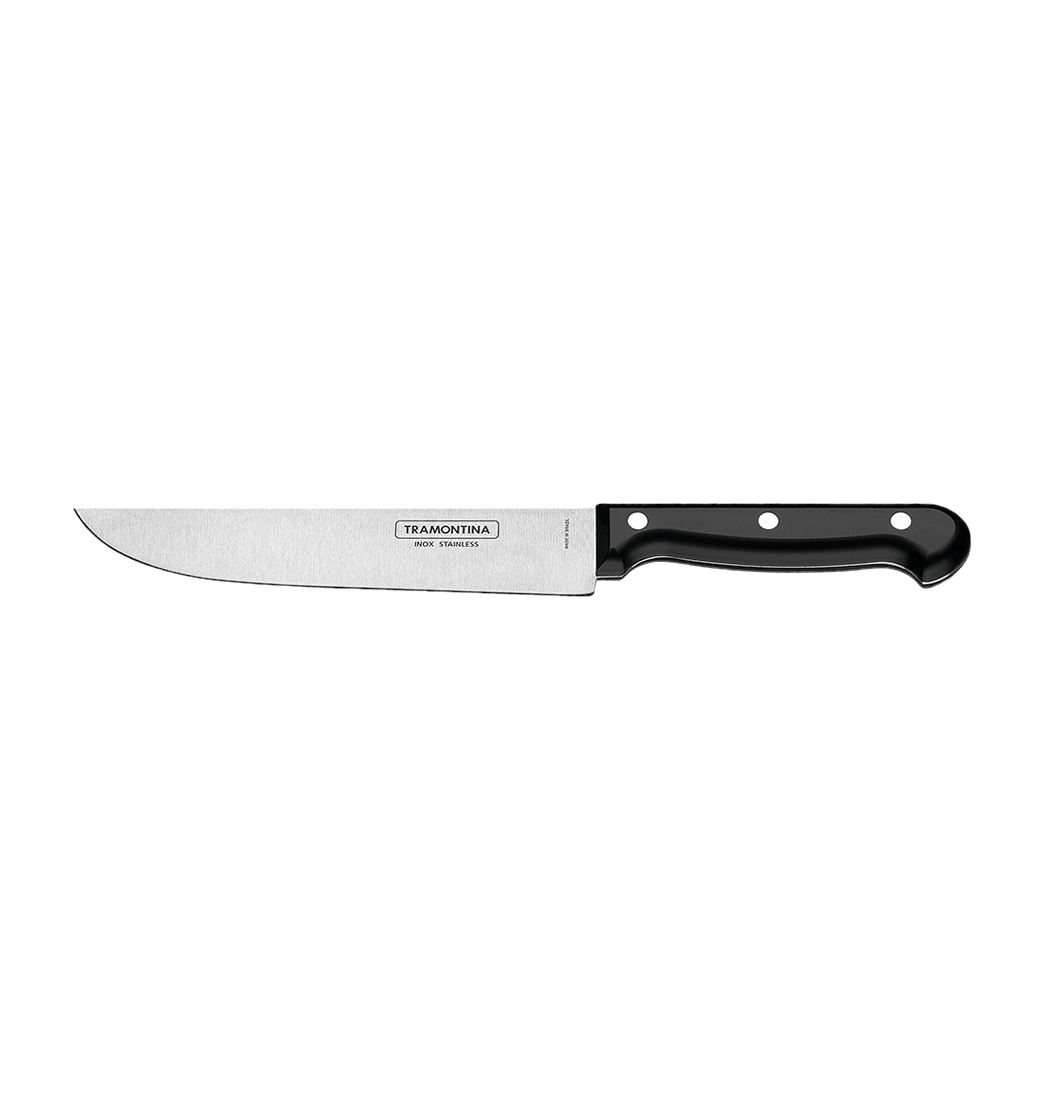 Tus recetas van a quedar más sabrosas con este espectacular cuchillo para carne de Tramontina Ultracorte. Cuenta con lámina de acero inoxidable y mango de polipropileno negro de 6 pulgadas. Está diseñado para realizar cortes de carnes, frutas y vegetales. Es resistente y cuenta con tratamiento térmico, lo que le da más durabilidad al filo. El mango de polipropileno tiene protección antimicrobiana que inhibe el crecimiento de bacterias y hongos. Complementa tu cocina con accesorios de calidad y ¡Anímate a llevarlo ahora!