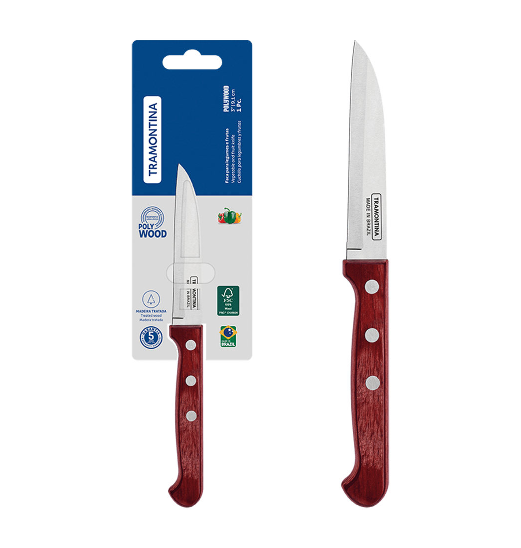 Cuchillo para Legumbres en Acero Inoxidable y Mango Polywood Rojo - Tramontina