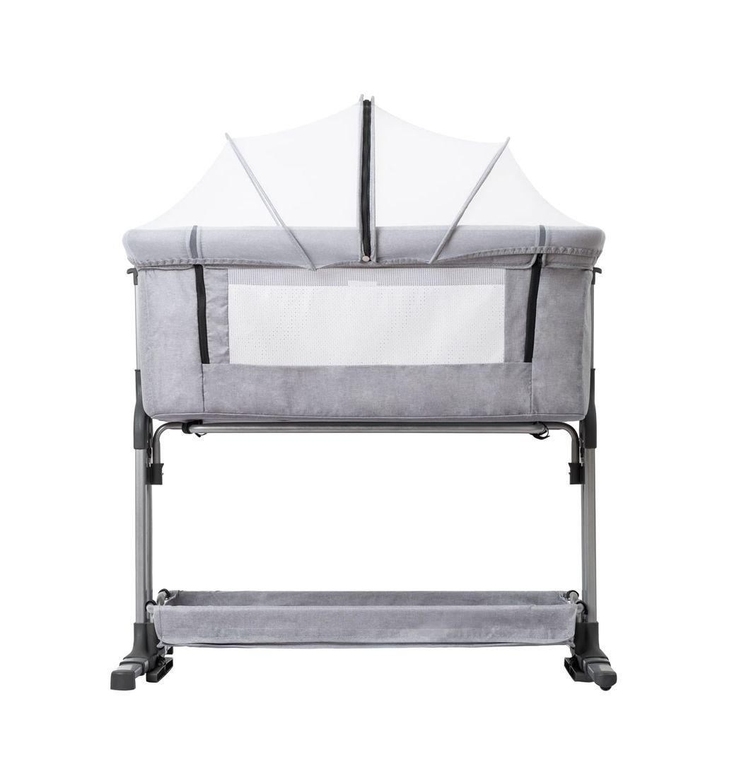 Ofrece cercanía y confort desde el nacimiento. Con 6 niveles de altura, pared abatible y sistema de anclaje seguro. Incluye colchón (46×85×4 cm), mosquitero y patas mecedoras. Compacta, fácil de armar y transportar, ideal para casa o viajes. Apta hasta 5 meses o cuando el bebé se incorpora solo.