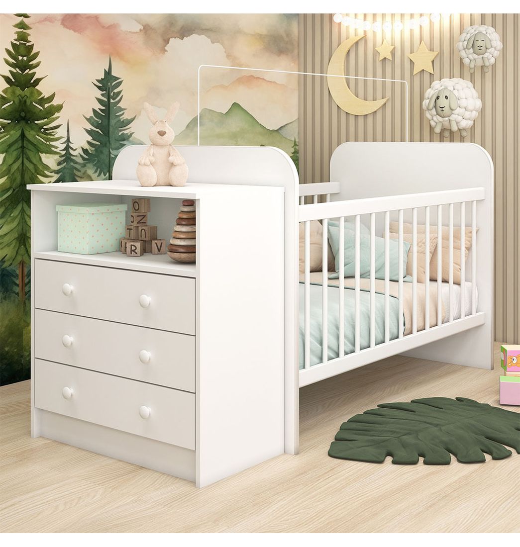 Cuna con Comoda 3 Cajones Blanco - Multimuebles
