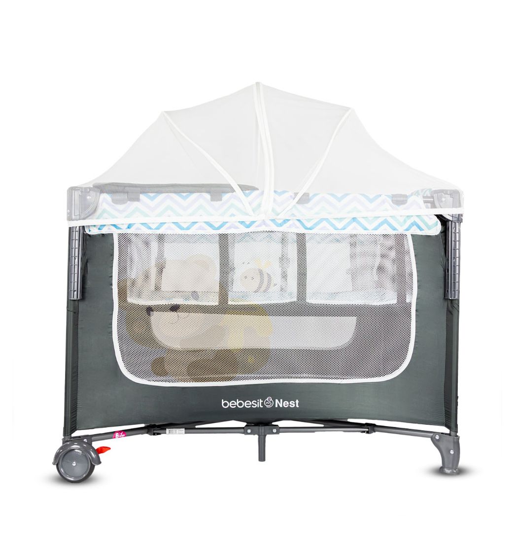 Cuna Corral Colecho para Bebé Nest Rayas Azul y Gris - Bebesit