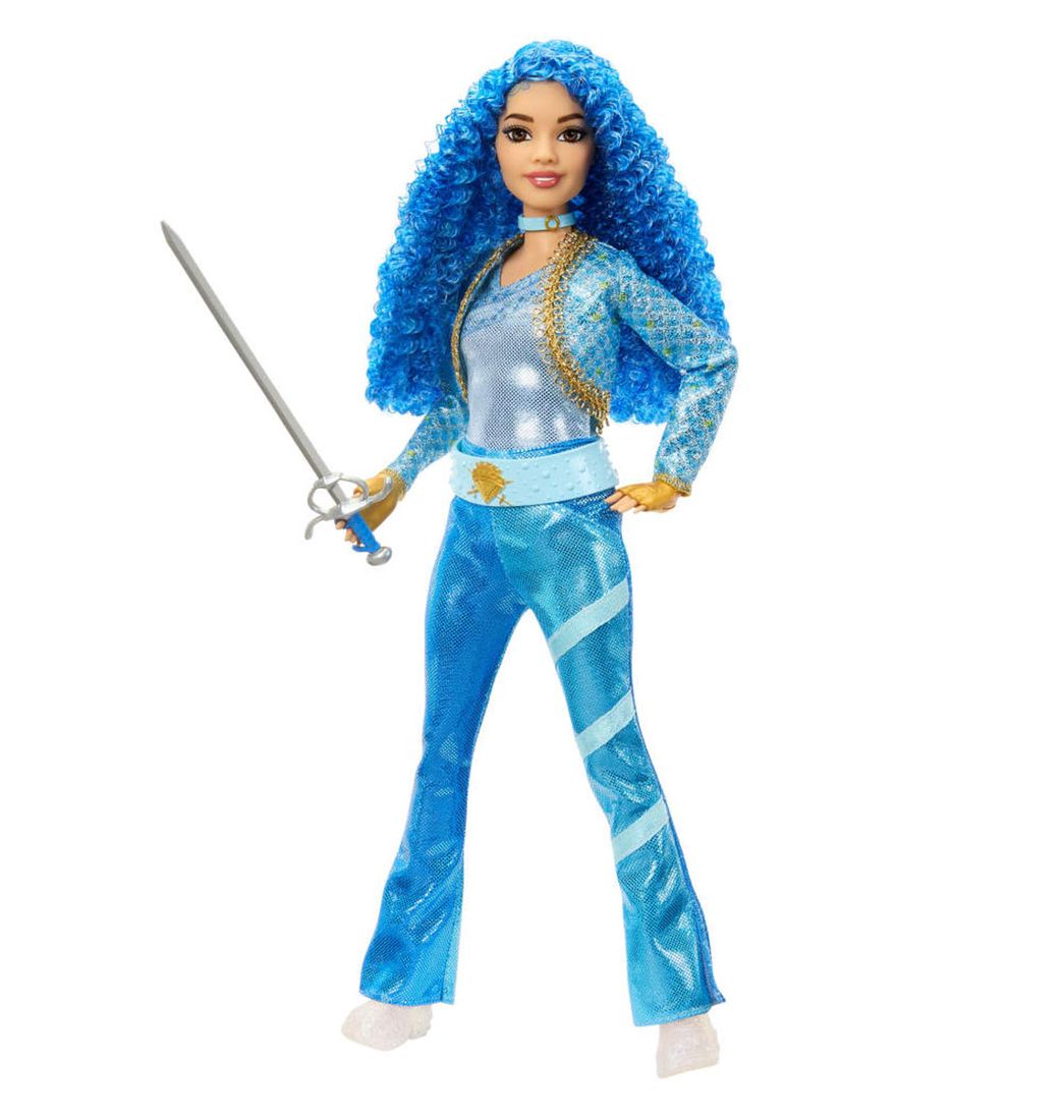 Incluye 1 muñeca con zapatos, guantes, collar y cinturón, además de 1 espada.
