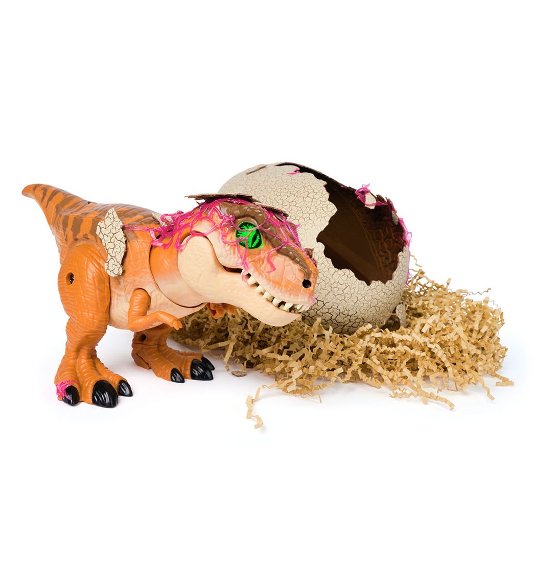 Incluye 1 huevo de dinosaurio con 1 T-Rex de color marrón con función de ataque y más detalles geniales, 1 controlador para el T-Rex, 1 trozo de carne e instrucciones de juego.