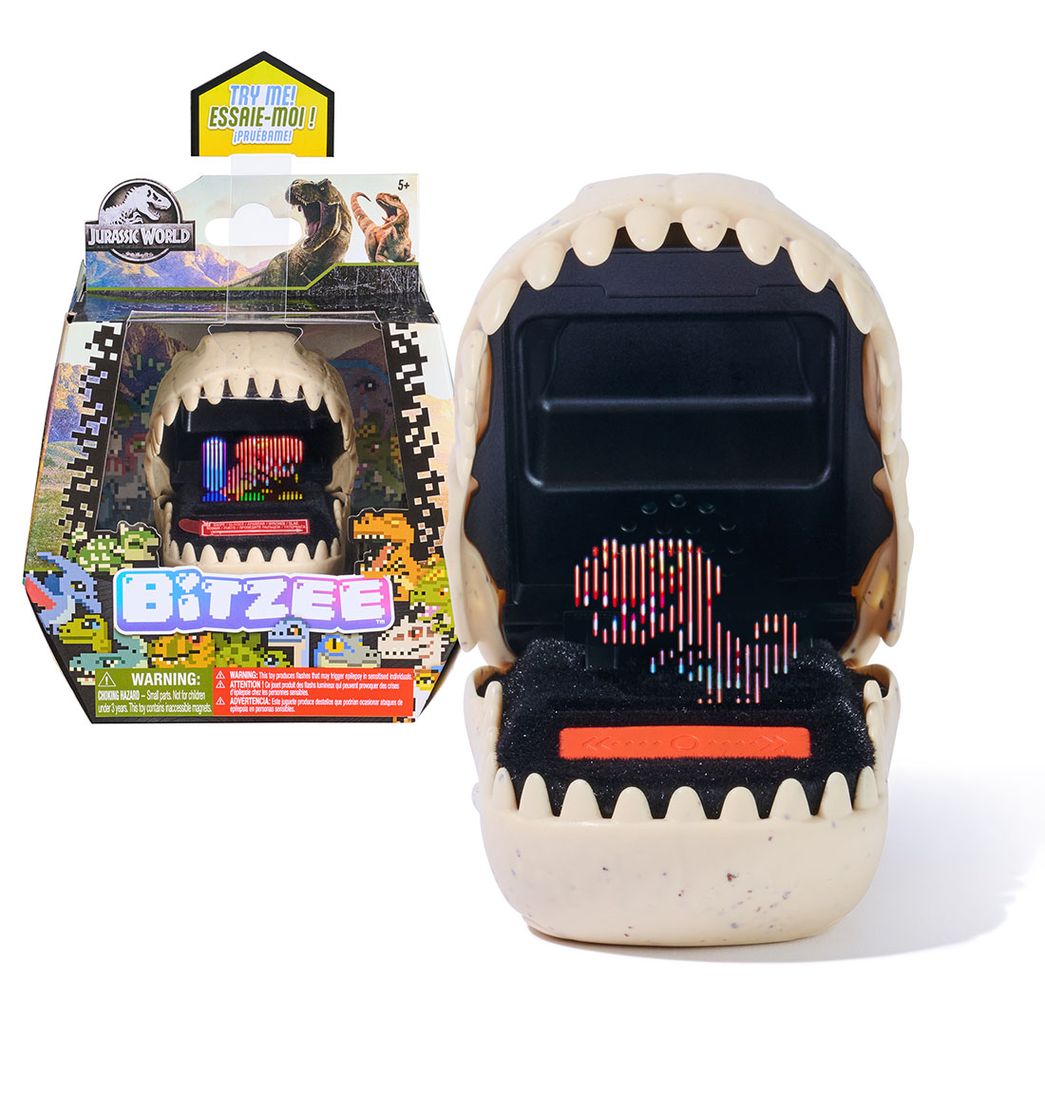 Con Bitzee Jurassic World, los niños pueden criar y entrenar hasta 25 dinosaurios, desde adorables bebés hasta feroces adultos. Además, pueden batallar o intercambiar con amigos mediante juego inalámbrico.