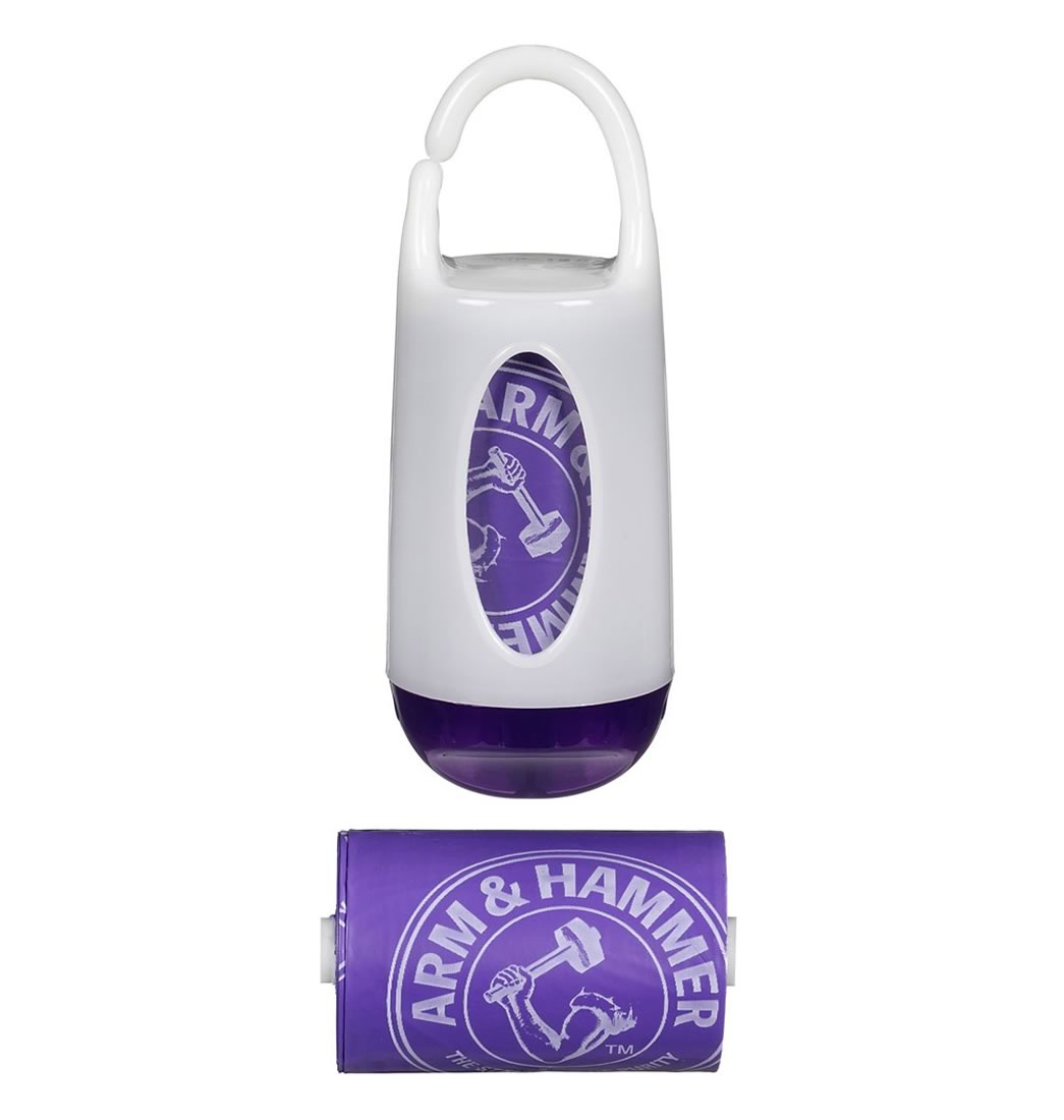 Mantenga las bolsas de pañales desechables al alcance del brazo con el dispensador de bolsas de "Arm and Hammer". Llene el dispensador tipo clip con bolsas de pañales desechables de Arm and Hammer. Las bolsas están impregnadas de Bicarbonato de Sodio tratado por la muy reconocida marca de limpieza Arm and Hammer absorben el olor de los pañales. Se puede utilizar en bolsos grandes y están disponibles en una variedad de colores para adaptarse a la decoración del cuarto del niño. Incluye dos rollos de recarga (24 unidades),