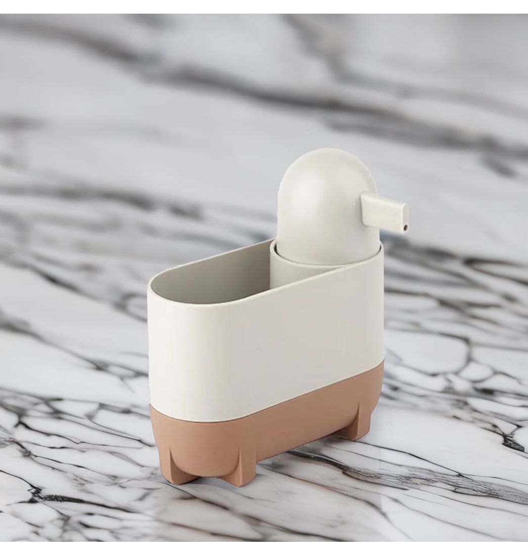 Optimiza tu espacio en la cocina con este dispensador de jabón de Ikhomecon porta esponja integrado. Su diseño 2 en 1 te permite dosificar jabón fácilmente mientras mantienes tu esponja siempre a mano y seca.