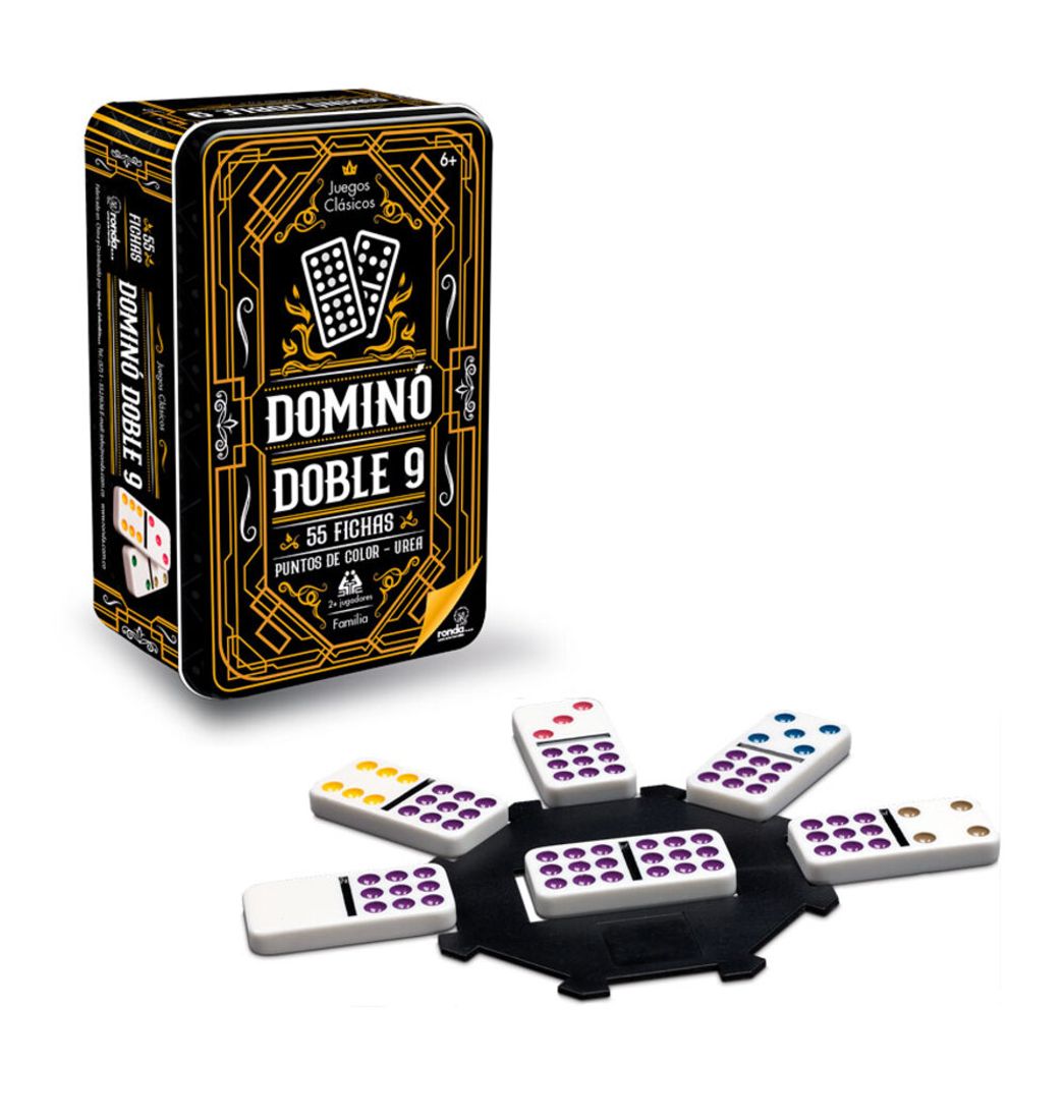 Disfruta junto a tus amigos y familia con este fabuloso juego de domino doble 9 de lujo y disfruta de grandes momentos de diversión. Incluye 55 piezas y cuenta con diseño de estuche de lata para que puedas llevarlo fácilmente donde quieras y llevar la diversión a otro nivel con este clásico juego de mesa, además, está fabricado en materiales resistentes y de alta calidad para una mayor duración. ¡No esperes más y anímate a llevar este fantástico juego! Recomendado para niños de 4 años en adelante.