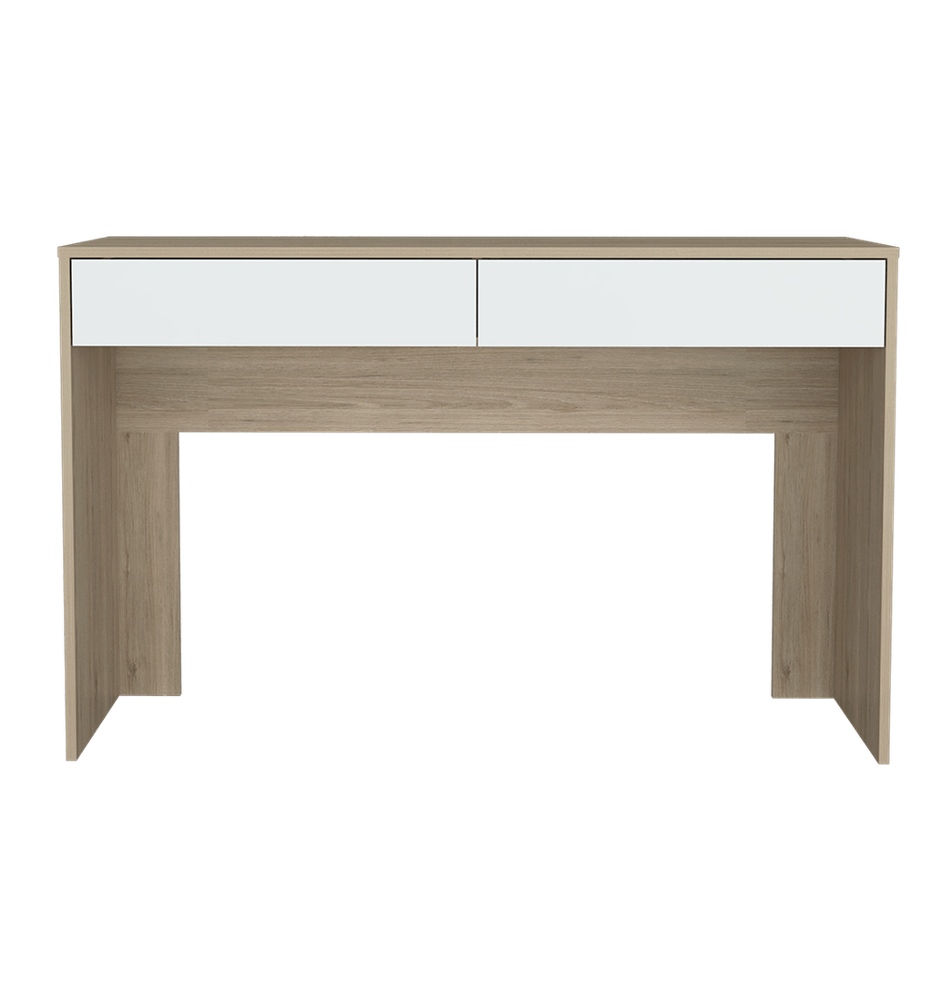 Complementa los muebles de tu hogar y tu oficina con este moderno Escritorio para Computador. Este mueble de madera cuenta con una amplia superficie de trabajo y dos cajones que te ayudaran a mantener en orden tus objetos de trabajo o estudio.