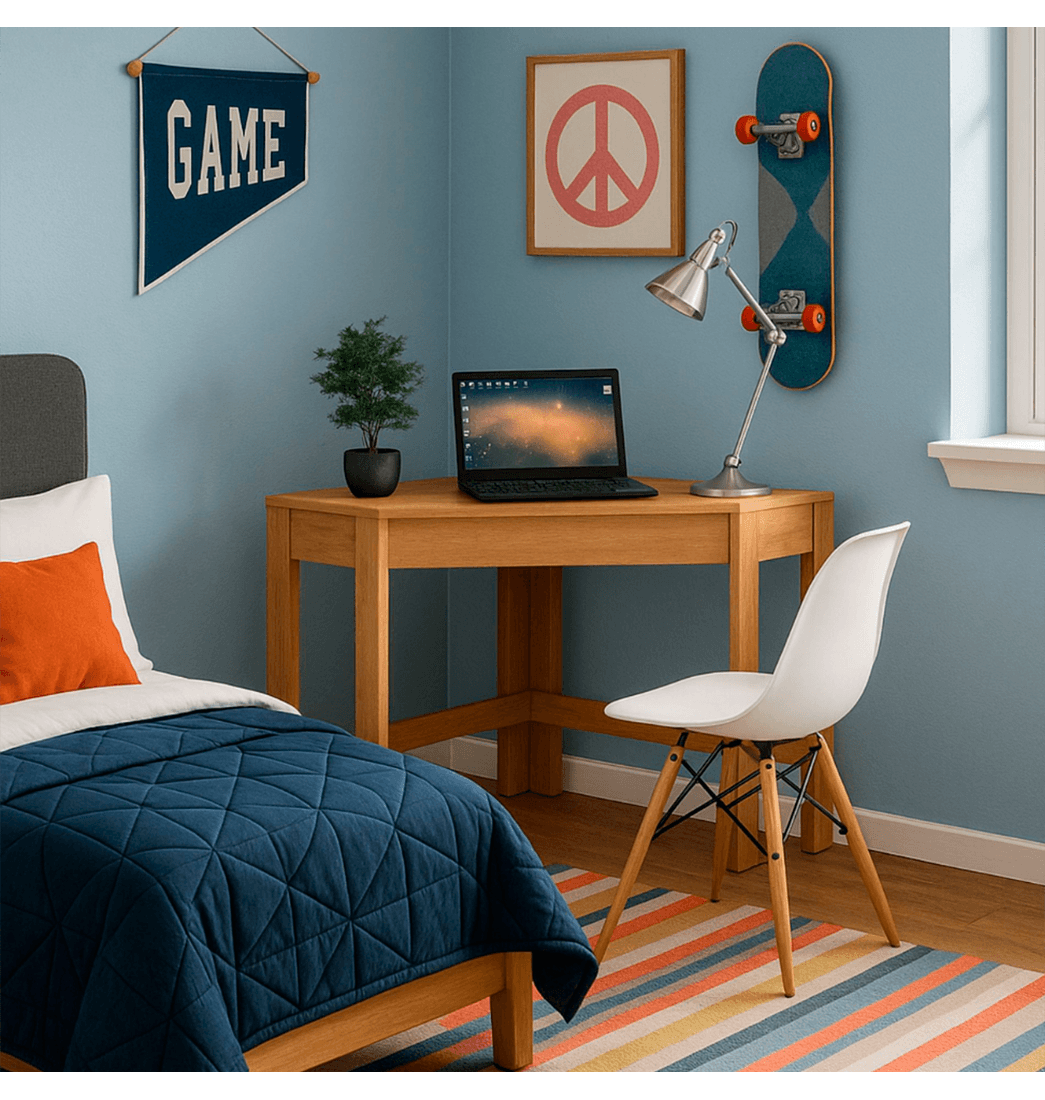 El diseño compacto se adapta con elegancia a esquinas y rincones, transformándolos en áreas productivas y estéticamente atractivas. Su tono cálido en madera natural aporta equilibrio visual y una sensación acogedora, perfecta para ambientes modernos o clásicos. ¡Anímate y adquiérelo ahora.