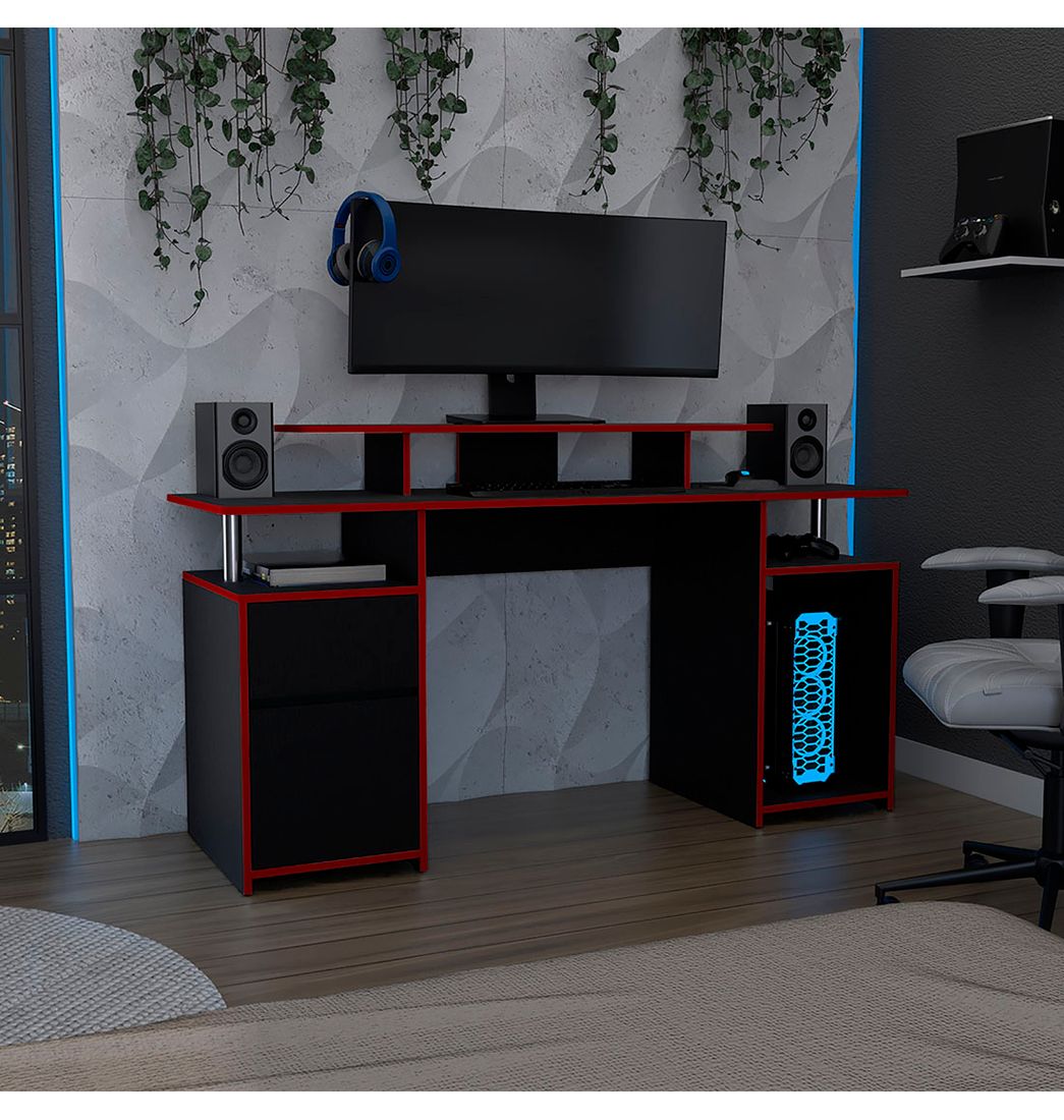 Escritorio Gamer Keria Elw 11411 Wengue Rojo - Rta Design