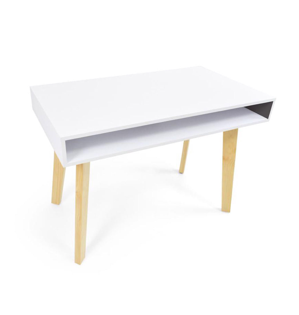 - Materiales: El Escritorio Toledo se encuentra fabricado en una fuerte estructura de madera MDP blanco, patas en madera pino natural pintadas con laca catalizada brillante.