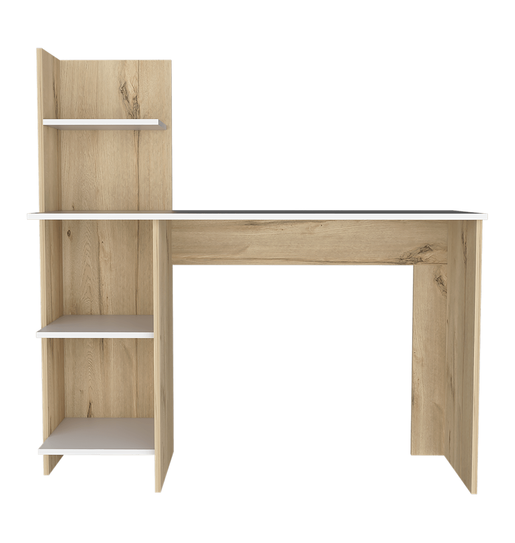 Complementa los muebles de tu hogar y tu oficina con este moderno Escritorio para Computador. Este mueble de madera cuenta con una amplia superficie de trabajo, entrepaños para ubicar libros y/o elementos decorativos, además de una linda combinación de colores que le dará un estilo único a tus espacios.