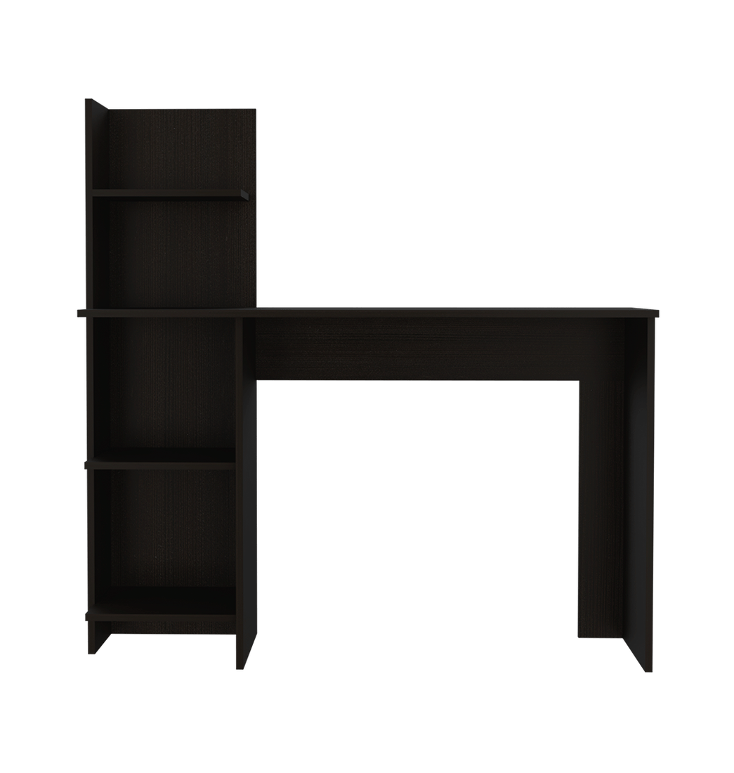 Complementa los muebles de tu hogar y tu oficina con este moderno Escritorio para Computador. Este mueble de madera cuenta con una amplia superficie de trabajo, entrepaños para ubicar libros y/o elementos decorativos, además de un lindo diseño que le dará un estilo único a tus espacios.