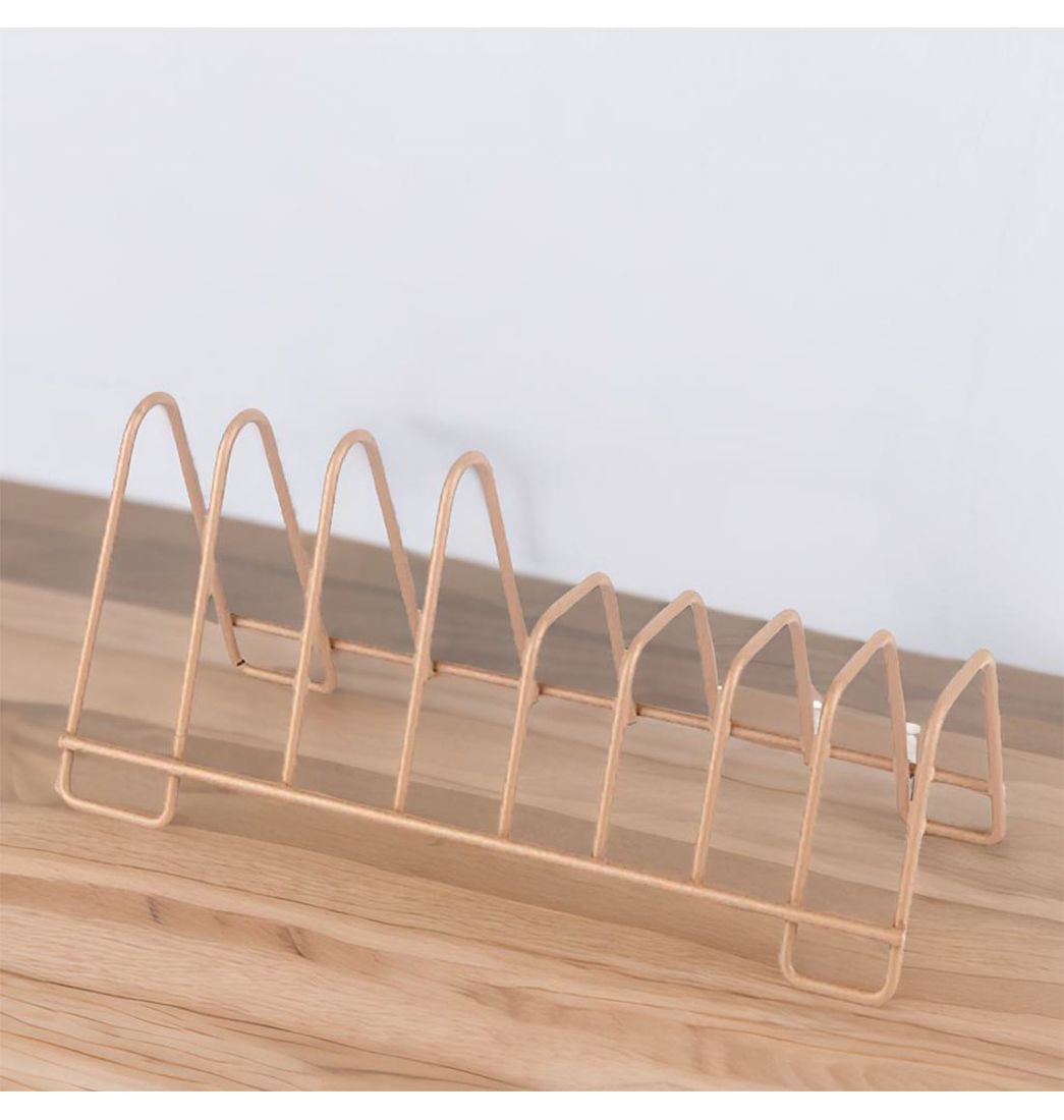 Fabricado en alambre metálico recubierto de color, con capacidad para hasta 8 platos.