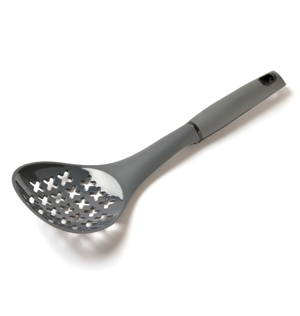Retira tus alimentos fritos del sartén de forma rápida y segura con esta espectacular Espumadera, la cual no solo te ayudara a sacar tus alimentos cocidos y escurrirlos, si no que también, a eliminar la espuma que se forma en la preparación de caldos. Su diseño esta elaborado con mango de plástico y goma antiresbalante con función 100% nylon, además su cabeza resiste hasta 210°C y lo mejor es que no raya la superficie de tus recipientes ¡Anímate y adquiérelo ahora!