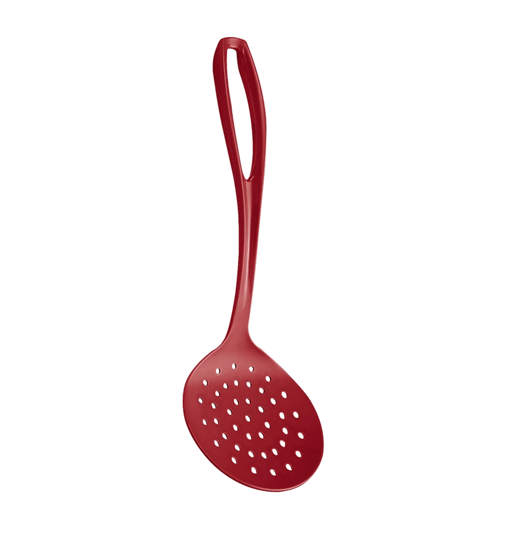 Esta espumadera con su diseño contemporáneo y elegante, se distingue por su estética limpia y alta calidad. Fabricada en nylon, es capaz de soportar temperaturas de hasta 180 °C, lo que la hace perfecta para diversas preparaciones.