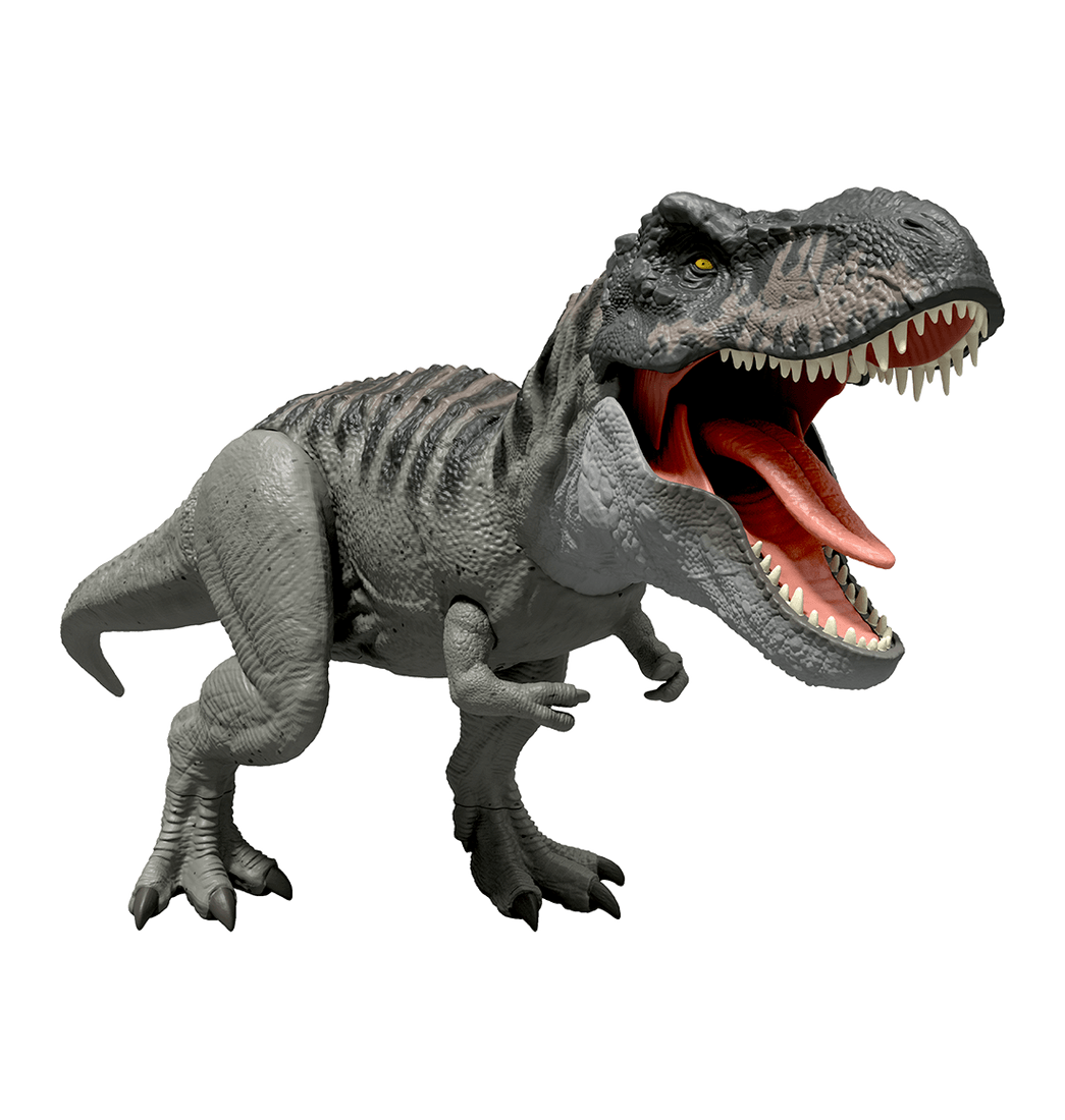 ¡Esta función permite jugar batallas llenas de acción mientras el T-Rex muerde otras figuras de dinosaurios! Manipulando la cola, se mueve la cabeza hacia arriba y hacia abajo o de lado a lado con la enorme mandíbula abierta.