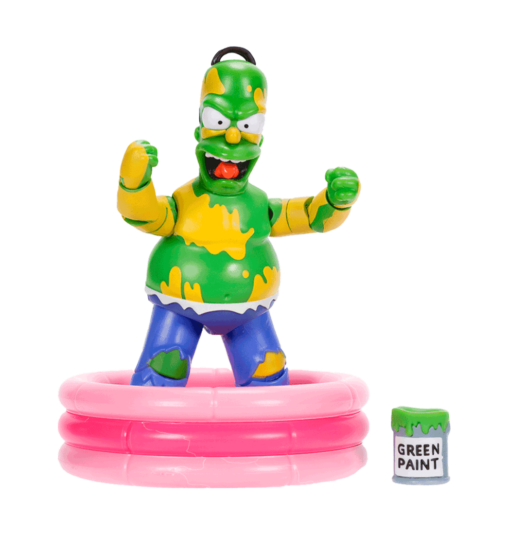 Activa la acción aplastante de Furioso Homer presionando el botón en su espalda, haciendo que su brazo se balancee para aplastar el accesorio de valla incluido. Furious Homer viene completo con un accesorio de valla de varias piezas, piscina para niños y lata de pintura, proporcionando infinitas oportunidades para recrear todos tus momentos favoritos del espectáculo.
