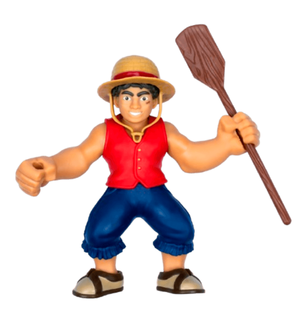 Monkey D. Luffy, también conocido como Mugiwara, es el protagonista de la serie de manga y anime One Piece, ahora; en su adaptación Live Action de Netflix, podemos ver como se estira para derrotar a los villanos que se encuentra en su aventura hacia el One Piece, ¡Ahora será más realista! Con la nueva figura de Goo Jit Zu, podrás jugar y recrear las mejores escenas, haciendo que Luffy se estire, esta figura se estira hasta tres veces su tamaño original.