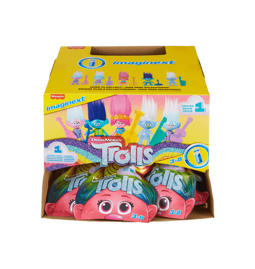 Los niños y niñas en edad preescolar pueden revivir sus momentos favoritos de las películas Trolls de DreamWorks y crear sus propias aventuras con estas figuras de personajes articulables de Imaginext