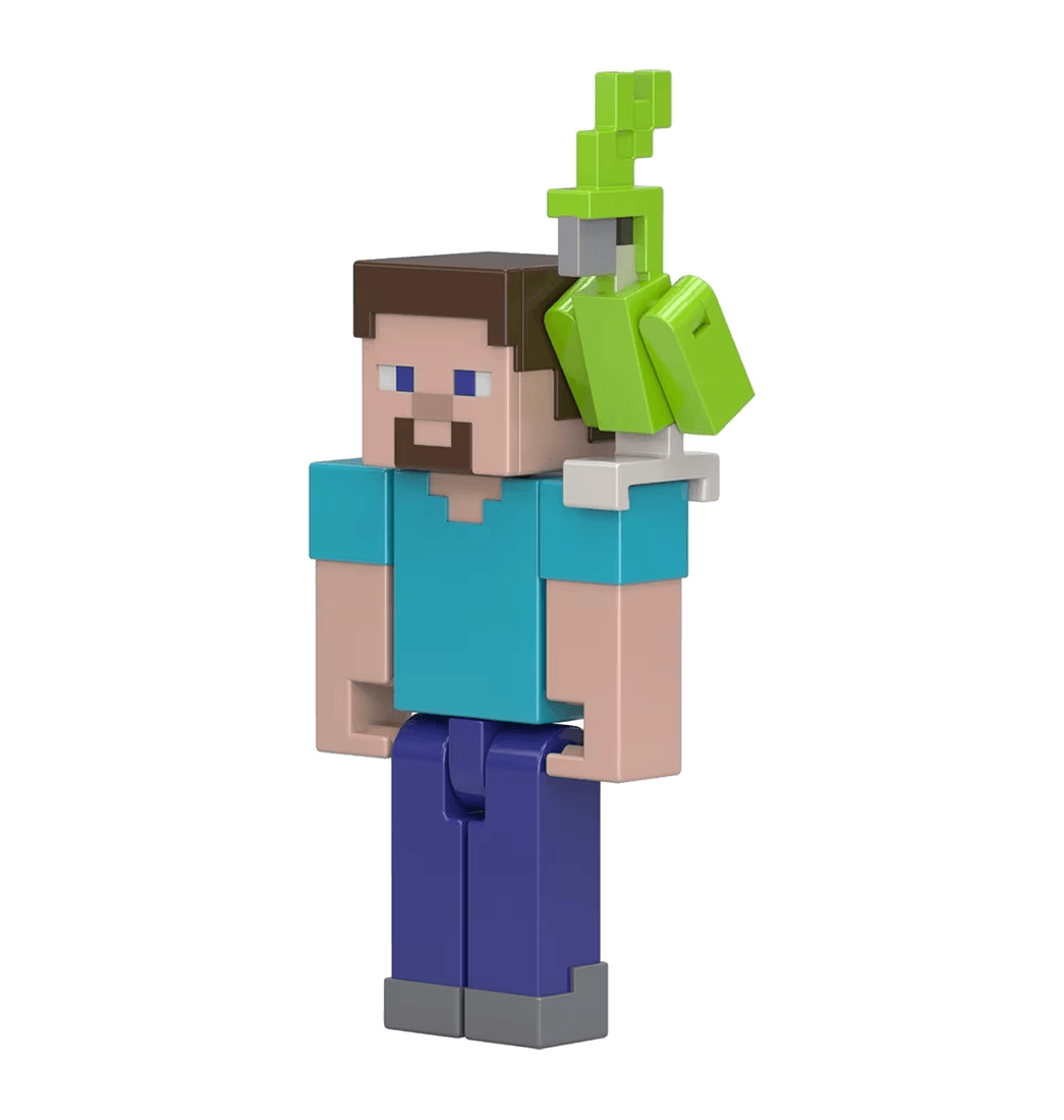 Figura Steve y Loro Verde 8cm - Minecraft
