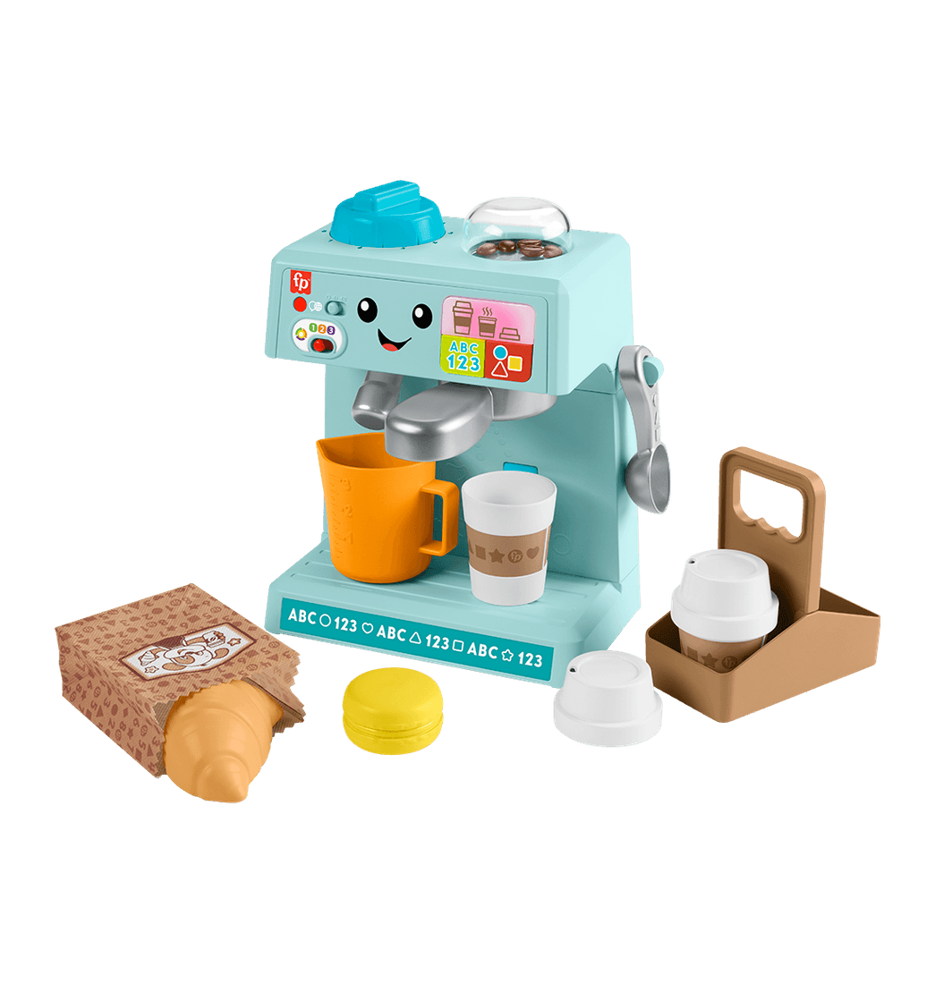 Niños y niñas pueden preparar un sinfín de tazas de juegos con el set Mi Primera Máquina de Café de Fisher-Price. Con el estilo de una máquina de café espresso real, la estación de barista interactiva Ríe y Aprende viene con 10 accesorios de juego de rol y cuenta con más de 100 canciones, sonidos y frases.