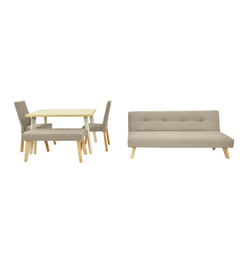 Futón London y Comedor 4 Puestos Liverpool Tela Poliéster Beige - Hogar Venecia