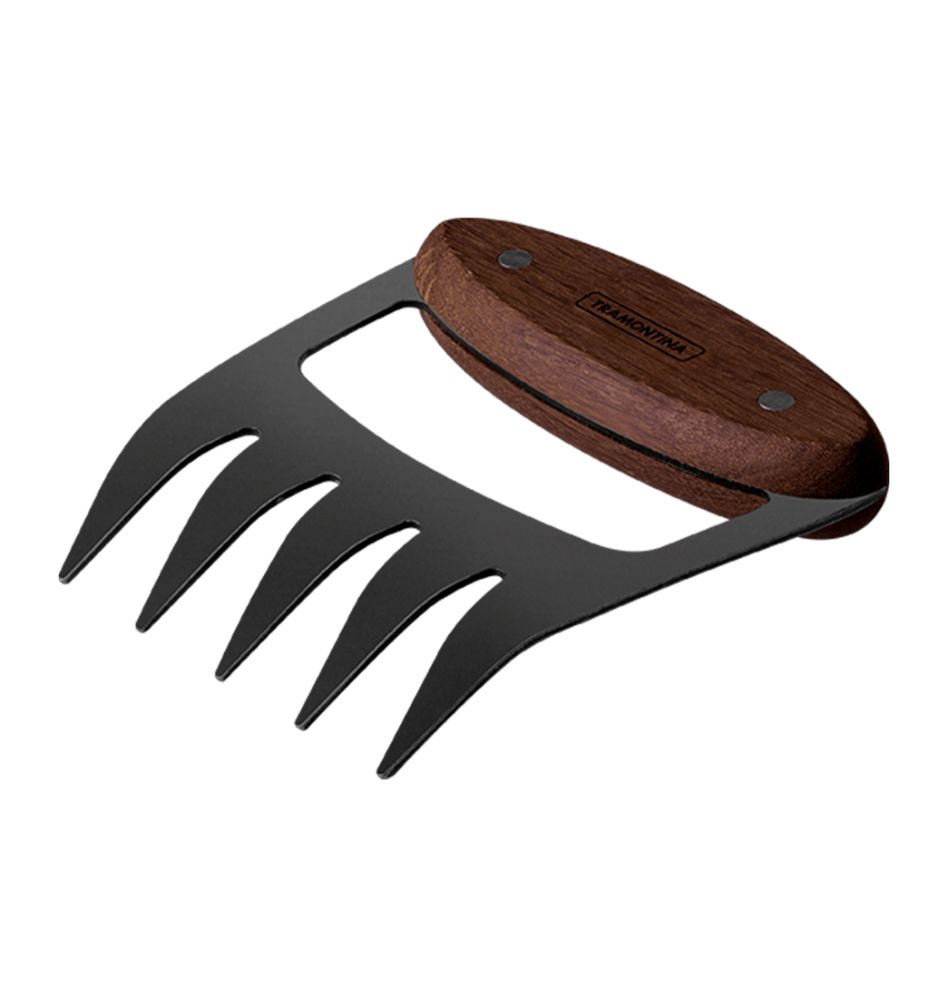 ¿Conoce estas piezas indispensables para preparar tu asado que lo ayudarán en los momentos más complicados? Una de ellas es la garra multiuso Tramontina Churrasco Black, con lámina de acero inoxidable oscurecido y mango de madera, con ella podrá desmechar y cortar los alimentos con mucha mayor practicidad, porque brinda un apoyo firme durante el uso.