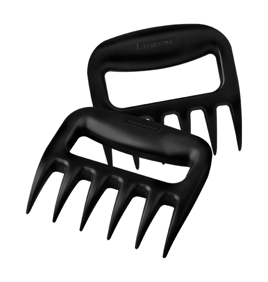 Para ayudar a cortar las carnes asadas y facilitar el momento de servir su asado del domingo, el juego de garras para asado Tramontina Churrasco Black es la elección ideal, ya que están desarrolladas para agregar practicidad a la hora del manejo con diferentes carnes, las garras son resistentes a temperaturas de hasta 90 °C y tienen un diseño anatómico que hace mucho más cómodo su utilización. Están elaboradas en ABS y son aptas para el lavavajillas, lo que facilita aún más la preparación de sus recetas. ¡Anímate y adquiérelo ahora!.