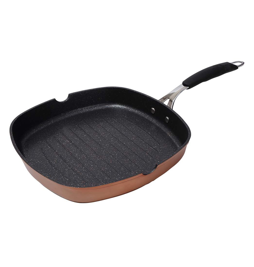 Prepara tus comidas favoritas y dale mucho estilo a tu cocina con este práctico Grill en aluminio forjado, que es ideal para preparar, freír, saltear o dorar tus alimentos. Cuenta con un mango en acero inoxidable con revestimiento en silicona, además es apto para meter en el horno ya que su antiadherente es de quantanium ¡Anímate a llevarlo!
