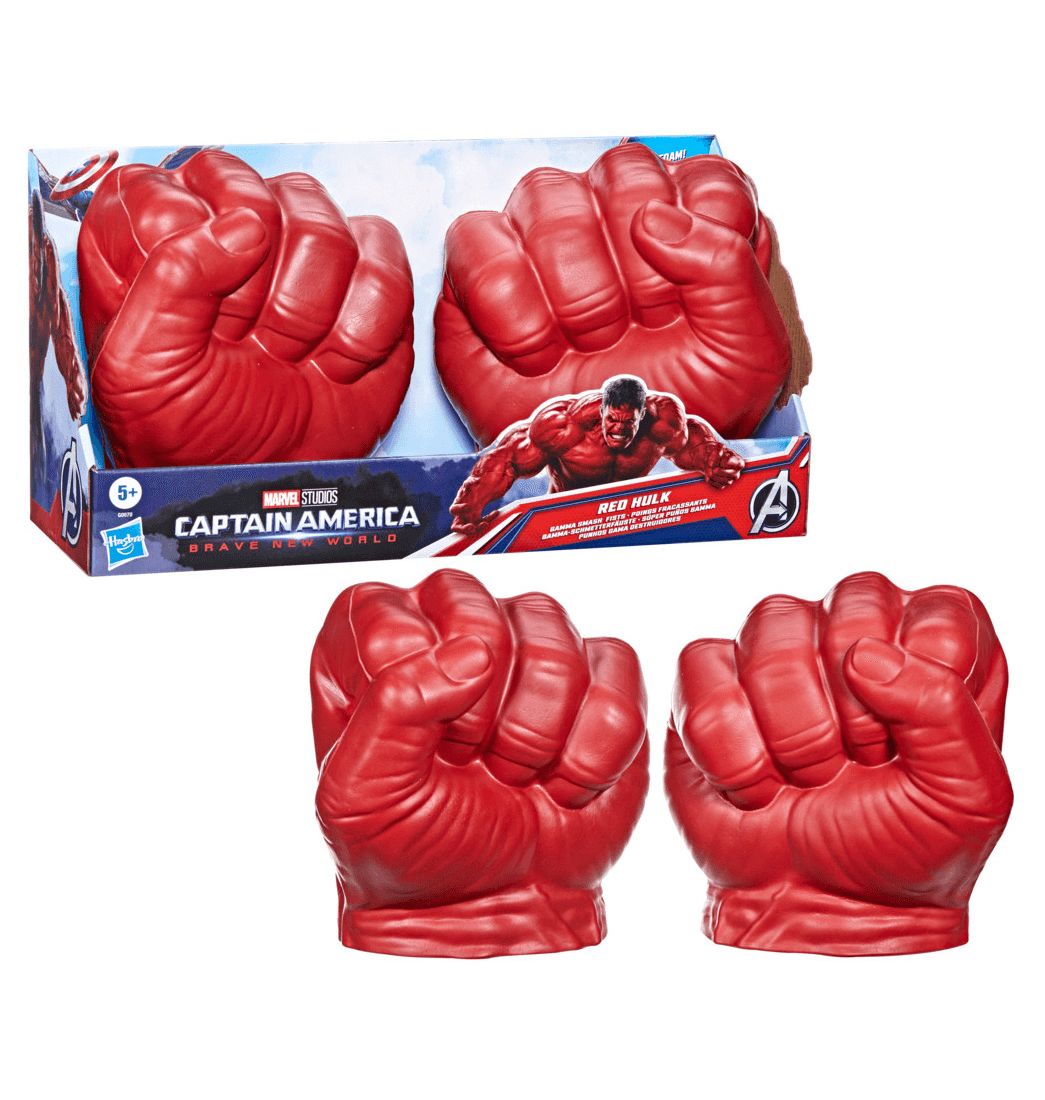 Estos Puños de Juguete aplastantes de Hulk Rojo cuentan con diseño y detalles inspirados en la película Captain America: Brave New World que forma parte del Universo Cinematográfico de Marvel. Cada puño incluye una banda de agarre en el interior para que los más pequeños puedan sujetar de manera segura los puños durante el juego.