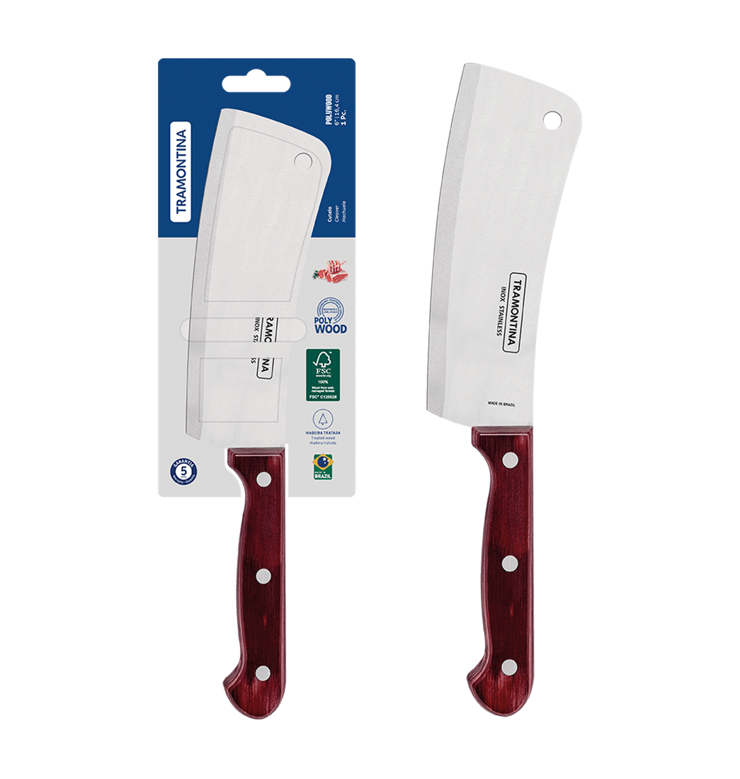 Hachuela Polywood en Acero Inoxidable y Mango Polywood Rojo - Tramontina