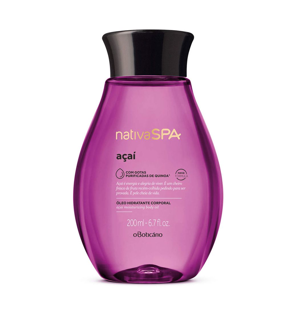 Perfecto para quien ama dedicar tiempo al cuidado personal, Nativa SPA Óleo Hidratante Corporal de Acaí tiene propiedades nutritivas y antioxidantes que dejan la piel vigorizada y radiante todos los días. Su fórmula es vegana y tiene aceites 100% vegetales como el extracto de girasol y las gotas de quinoa purificada, que aumentan la producción de colágeno y evitan la pérdida de elasticidad de la piel.
