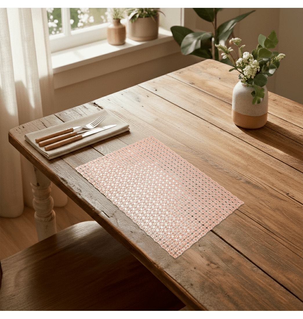Transforma tu mesa con este espectacular Individual de alta calidad, el cual esta diseñado para ofrecer un toque de elegancia y protección a tus superficies. Estos individuales no solo embellecerán tu comedor, sino que también protegerán tu mesa de manchas y arañazos, además, están elaborado con materiales duraderos y resistentes. ¡Haz de cada comida una experiencia especial con este elegante individual, anímate y adquiérelo ahora!.