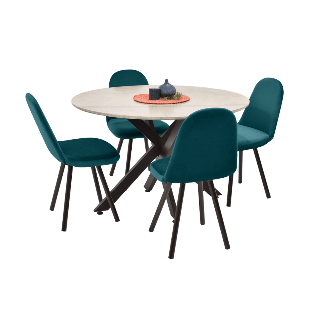 Juego Comedor Luxor Matiz 4 Puestos Tela Petróleo - Hogar Venecia
